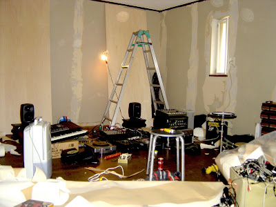●入り口は自作防音ドア取り付け。色はオスモカラーのレッド